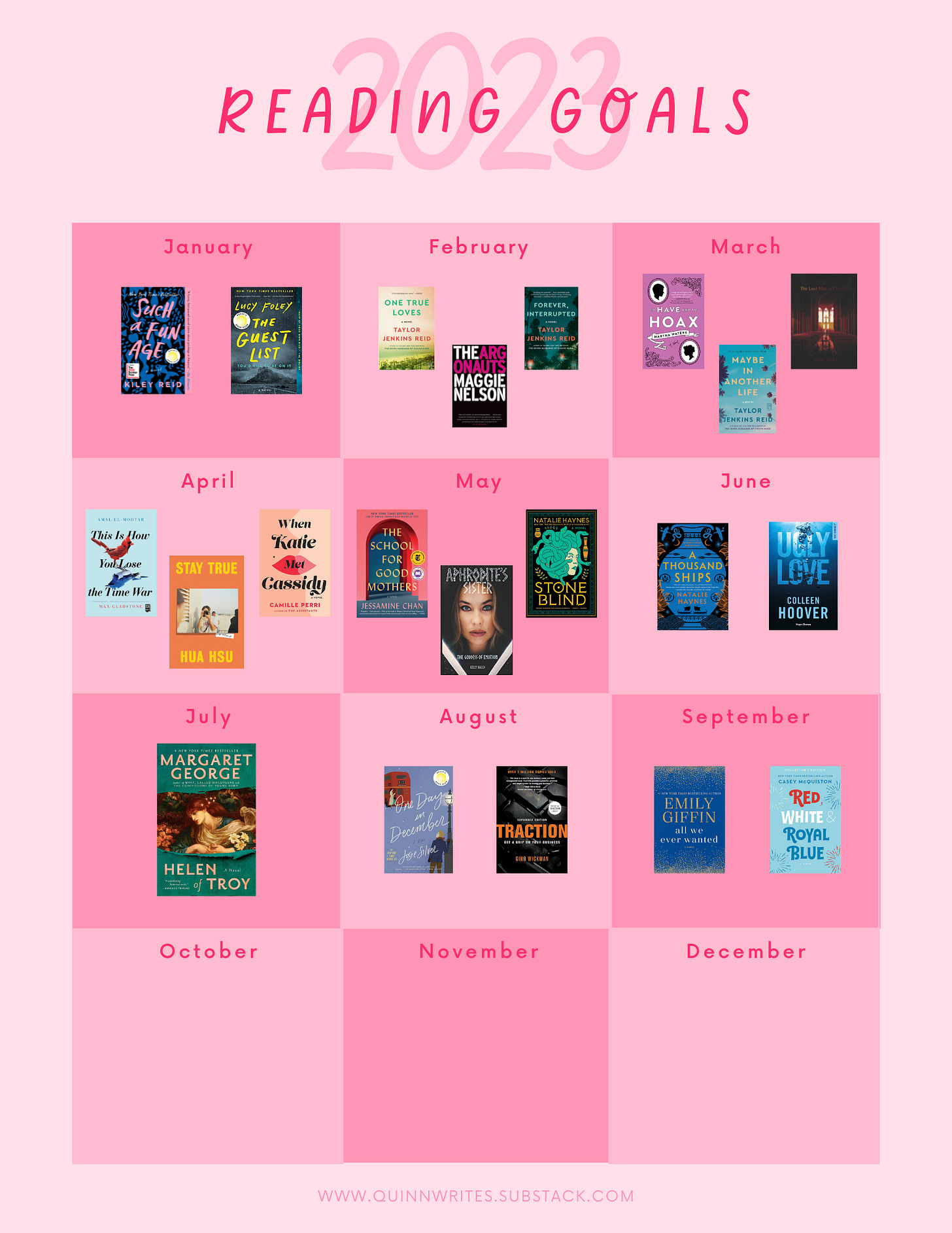Anyway, those are my updates for you this month! Thanks for sticking with me for the three-month hiatus and then this extraordinarily long issue of Quinn Writes. This is the 30th issue of this newsletter, and I’m so happy to bring it back to your inbox once again. I can’t wait to talk to you all next month!